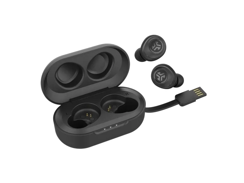 Time to GO on the move. Grab your JBuds Air True Wireless Earbuds as you head to work, get to the gym, or jump on an airplane. A 6-hour battery life with Bluetooth 5 gives you just enough power to get through those music moments. Their innovative charging case provides 18 extra hours to the earbuds so you can charge back up quickly. Automatically turning on and connecting to each other right out of the case, they provide hassle-free technology. Perfect for on-the-GO moments.