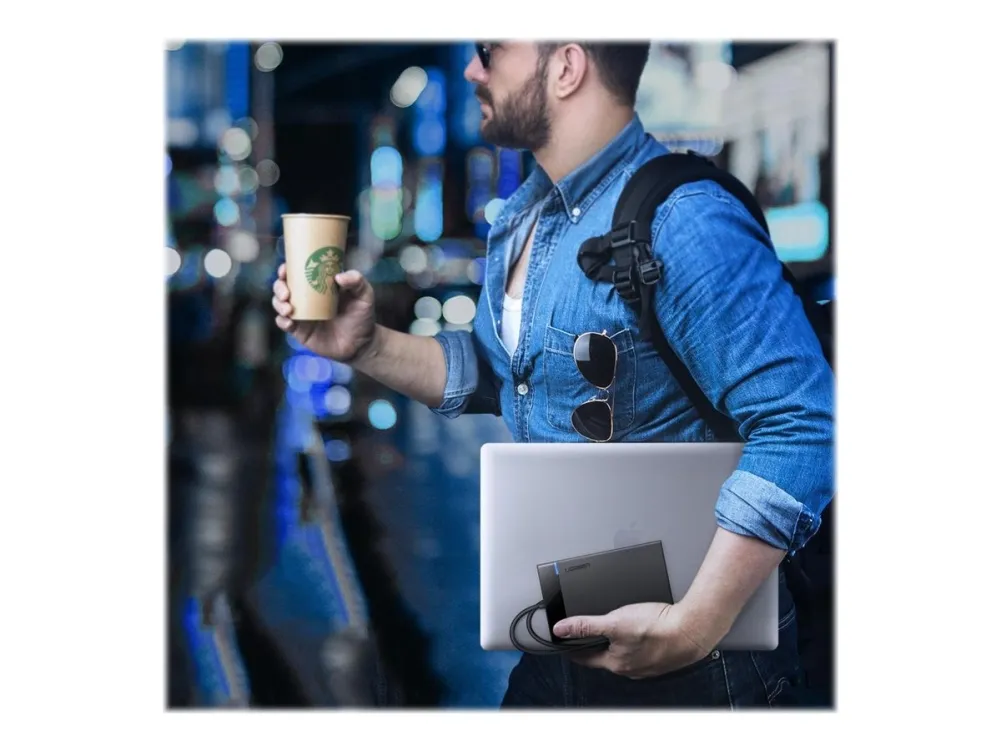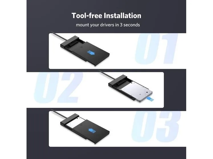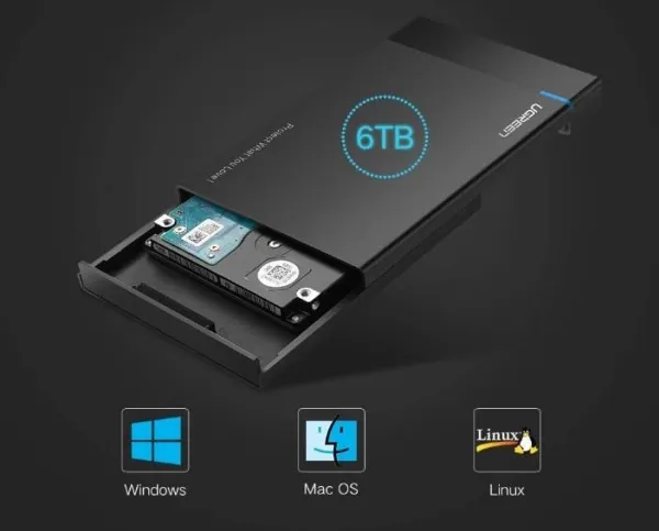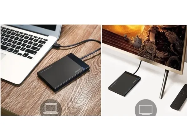 Ugreen 2.5 inch sata HDD to USB 3.0 hard drive enclosure protects your 2.5" HDD and SSD from shaking damage and scratches, and easily connects your hard drive to a PC or laptop for data transfer.