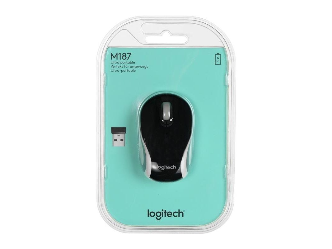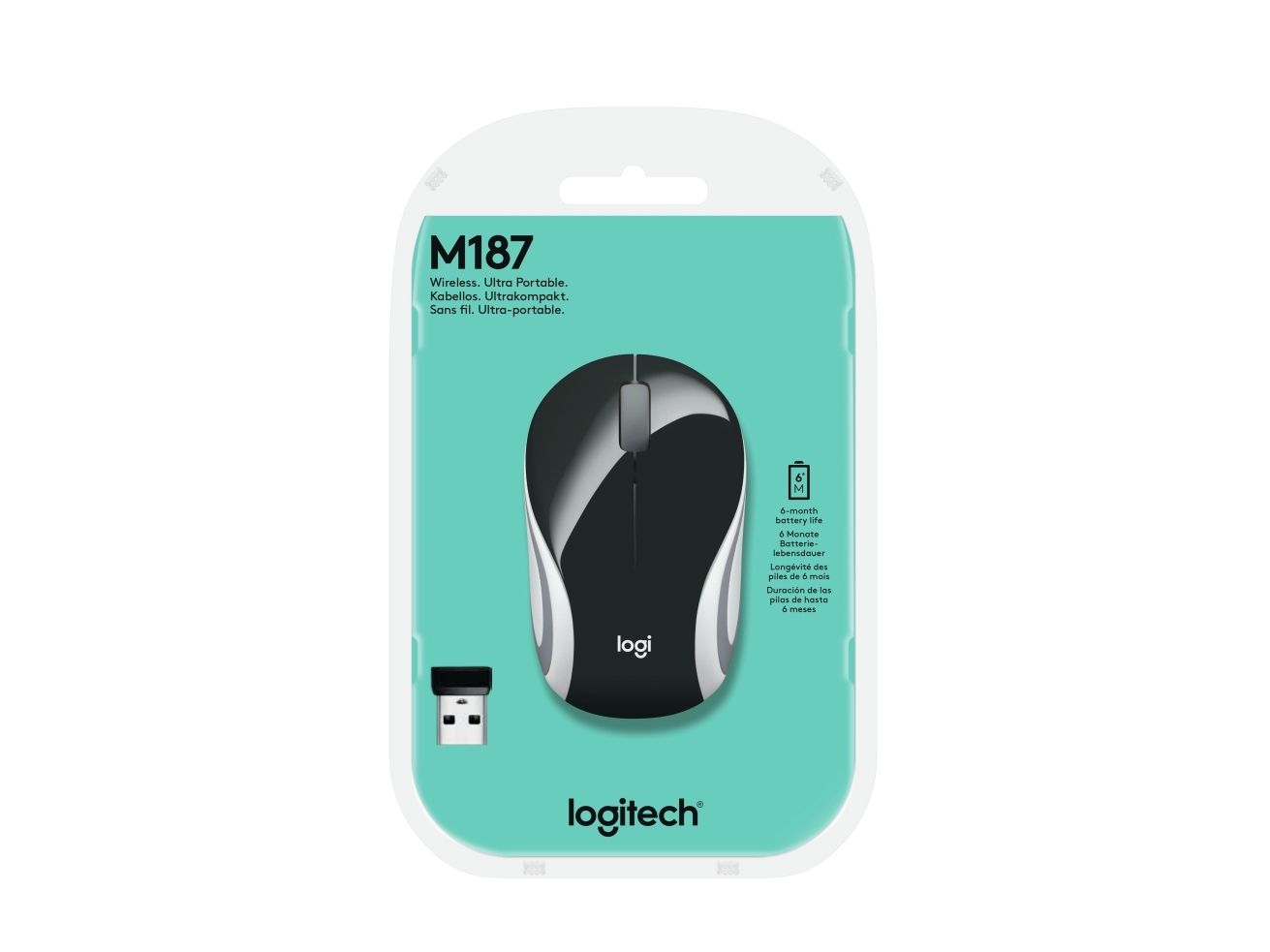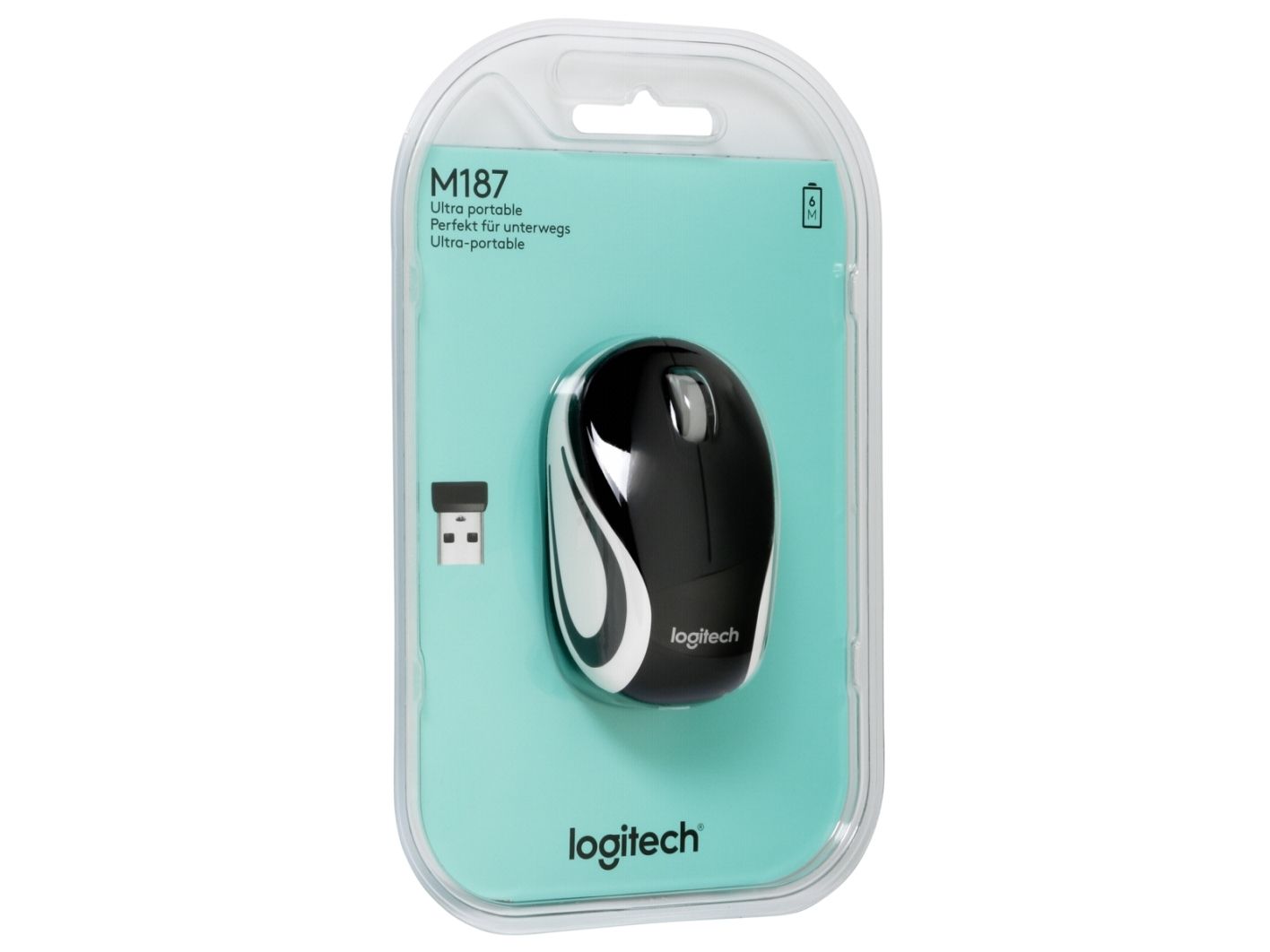 Logitech ultraportabel trådlös mus M187 Den trådlösa minimusen kan följa med den bärbara datorn överallt - tack vare det extremt lilla formatet som gör att den lätt ryms i fickan. Installationen kunde dessutom inte vara enklare. Anslut bara nanomottagaren och börja använda musen. Trådlös frihet med mer precision och kontroll än bärbara datorers pekplattor.