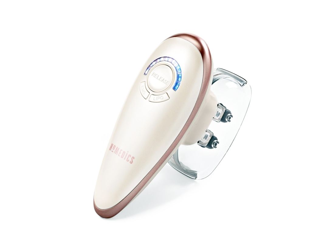 The HoMedics Smoothee Skin Smoother gives you the chance to enjoy visibly smooth skin and body contour, leaving your skin with a brighter and more even complexion. It helps reduce the fluid retention under your skin and activates fat cell metabolism. This skin smoother helps in reducing the cellulite appearance using the combination of vacuum massage and electronic stimulation (EMS). Included are two suction cups for different sized areas.