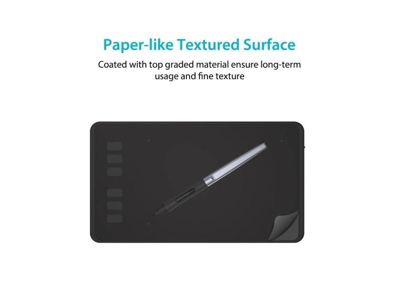 16×10 cm / 6.3×3.9 inch working area is sufficient and compact. The smooth paper-like texture, bezel-less design, and round corners give this tablet soft look and feel. It has 6 customizable press keys and there are 2 additional keys on a pen. Keys functionalities are easy to set according to your needs for better efficiency and more enjoyment.