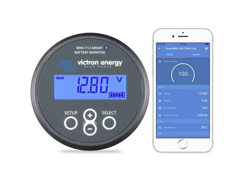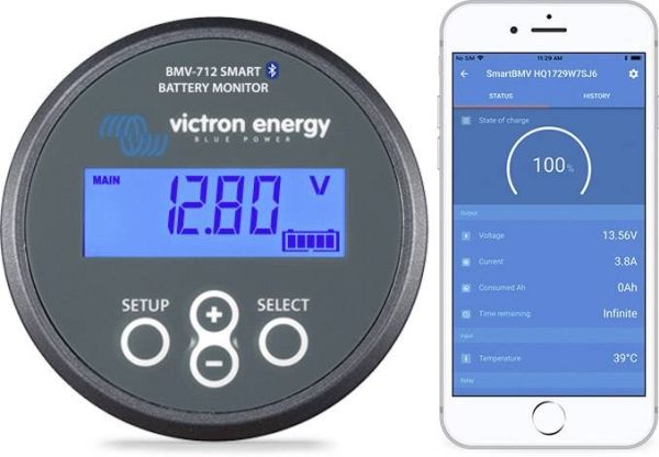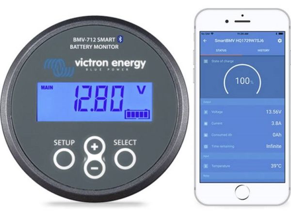Batterimätare Victron BMV-712 SmartMed integrerad Bluetooth Med sin inbyggda Bluetooth är BMV Smart redo för sakernas internet (International Direct Dialing). De flesta andra Victron Energy-produkter har också via Bluetooth. Trådlös kommunikation mellan produkter underlättar installationen av system och förbättrar prestanda.