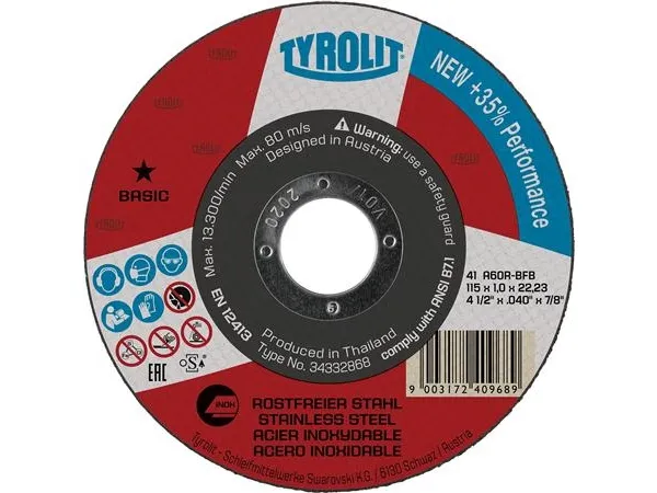 Skärskiva BASIC A60R-BFB 115X1,0X22 Inox/stål Form 41 rak - (25 st)