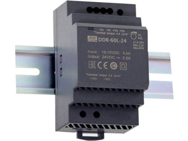 MEAN WELL DDR-60G-24, 60 W, 24 V, RoHS, 52,5 mm, 54,5 mm, 90 mm