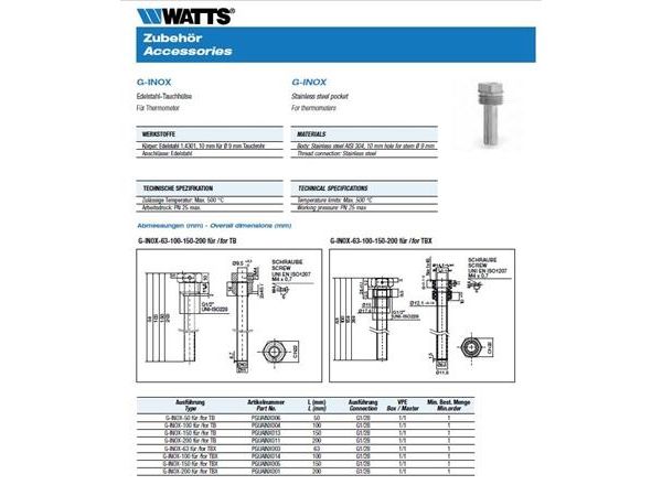 Csslr Plus TB givarficka i AISI 304 ½" x 50 mm. Passar med termometer typ TB