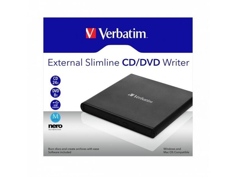 This little device is what you need if you own a notebook, ultrabook or netbook. Use it to install your software or to create a back-up. The Verbatim External Slimline CD/DVD Writer is USB powered so no power adapter is needed. It is barely larger than a DVD and fits easily in your pocket - you never have to go anywhere without it!