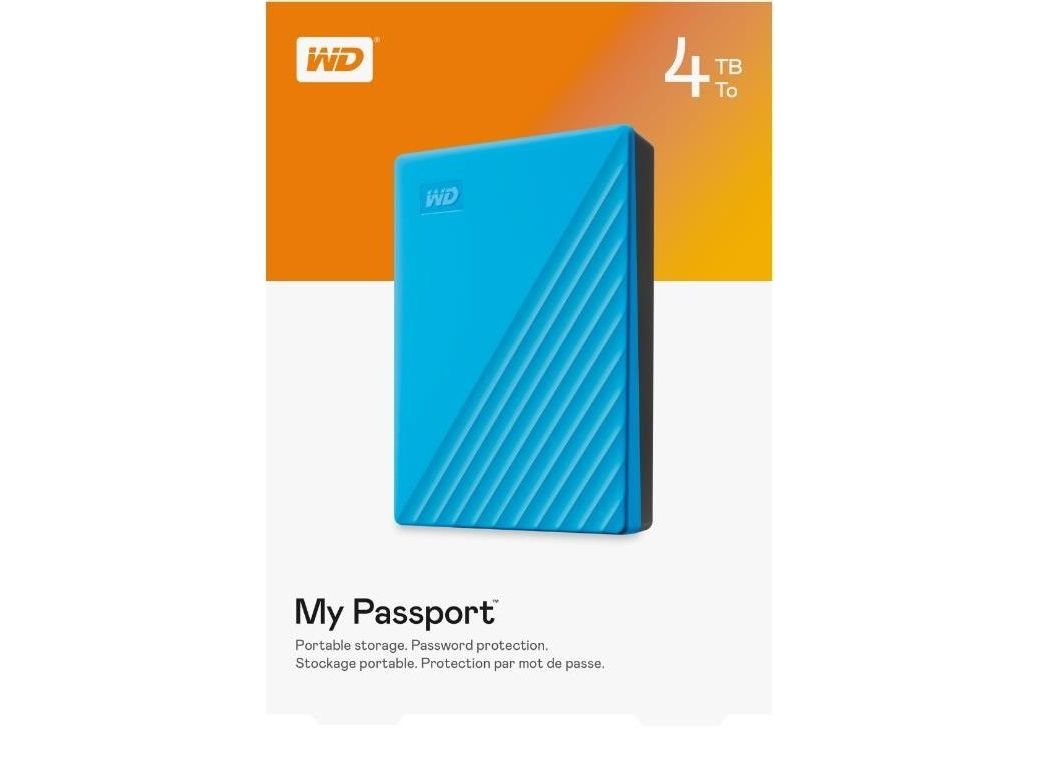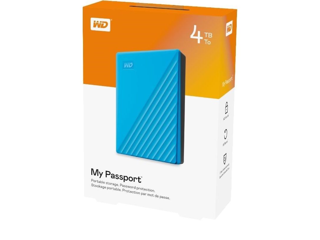WD My Passport WDBPKJ0040BBL - Hårddisk - krypterat - 4 TB - extern (portabel) - USB 3.2 Gen 1 - 256 bitars AES - blå