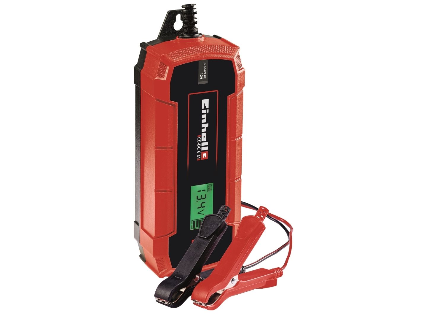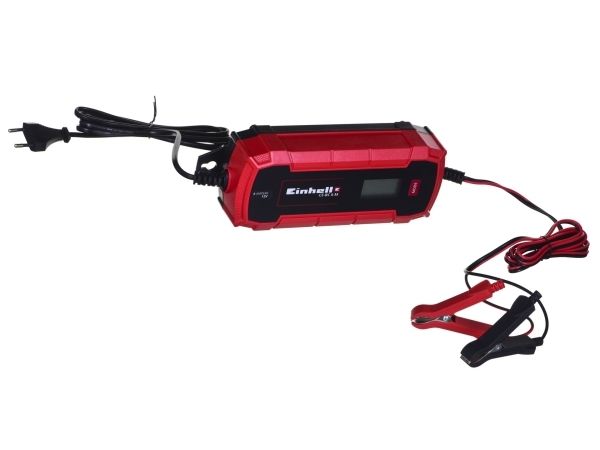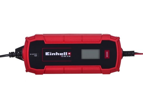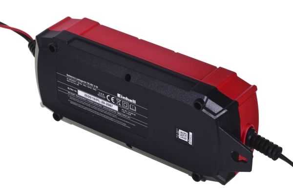 The Einhell CE-BC 6 M battery charger is an intelligent battery charger which is optimized for the high-tech, high-performance batteries of modern-day motor vehicles. The battery charger with a microprocessor controller is suitable for a wide variety of vehicle battery types and features a range of technical protection and maintenance mechanisms. The main focus of the development is the high-speed, low-stress charging of the batteries, for a service life which is as long as possible with no compromise on full performance. A detailed charging indicator makes the charger less complicated to operate than conventional devices. This Einhell allrounder is suitable for gel batteries, AGM, and zero and low maintenance lead-acid batteries. The CE-BC 6 M automatically adjusts to the battery voltage of 12 V vehicles. The multi-stage charging cycle of the Einhell battery charger is automatically monitored and adjusted by the microprocessor controller. The smart electronic control system analyzes the battery type which is connected and its condition, setting the optimum mode according to requirements. The trickle charge function protects and reduces the stress on the battery to maintain the optimal charge at all times. This also makes the CE-BC 6 M suitable for all vehicle types and especially seasonal vehicles with long idle times: Instead of letting the battery slowly discharge until completely flat and risk deep discharge, the battery is maintained at its optimum level with low stress by the trickle charge function. The trickle charge function reduces the stress on the battery cells and contributes to an extended service life, so preventing the need for avoidable and costly replacement of a defective vehicle battery. So cars, motorcycles or scooters are immediately ready for action at the start of each season. A winter charge mode has been specially developed for use when the outside temperature falls below 5° Celsius. The device also has a recondition mode for revitalizing deeply discharged batteries, and a supply mode to enable it to be used as a power supply. The battery charger from Einhell has automatic protection against overcharging, short-circuit and swapped poles: These protection mechanisms protect both charger and battery. The LCD battery voltage and charge status indicator shows the battery charge and charger mode setting at a glance. The battery clamps are fully insulated, so batteries can be connected to the battery charger safely and easily. The housing has a suspension eyelet to mount to the wall.