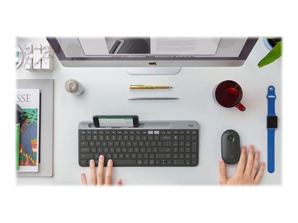Äg ditt utrymme med tangentbordet K580 Slim för flera enheter.