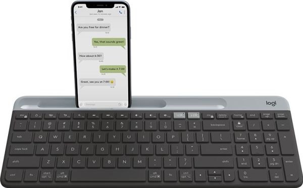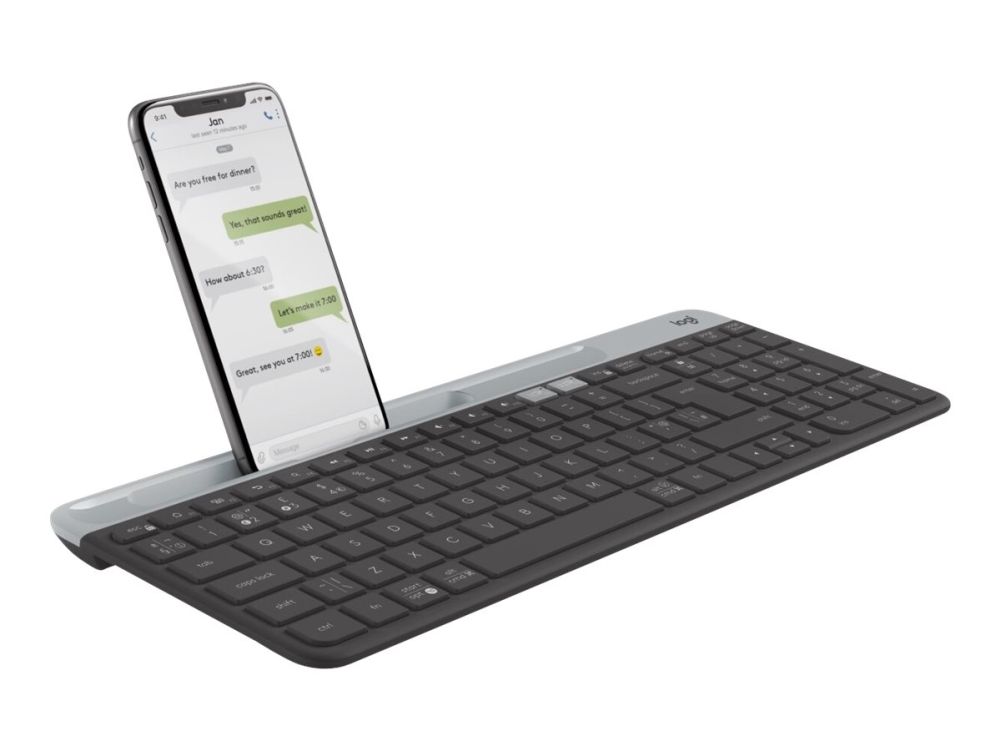 Ett datortangentbord som även fungerar med din smarttelefon och surfplatta. Med Easy Switch-knapparna kan du växla mellan att skriva på två enheter med ett och samma tangentbord. Börja skriva en rapport på datorn, växla sedan till att skriva ett meddelande på telefonen. Denna kan placeras i den inbyggda telefonvaggan så att du lättare kan jobba med flera olika uppgifter.