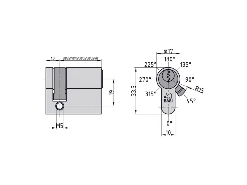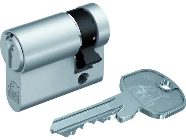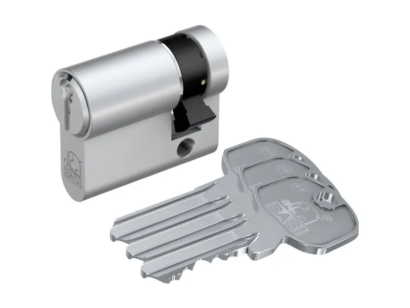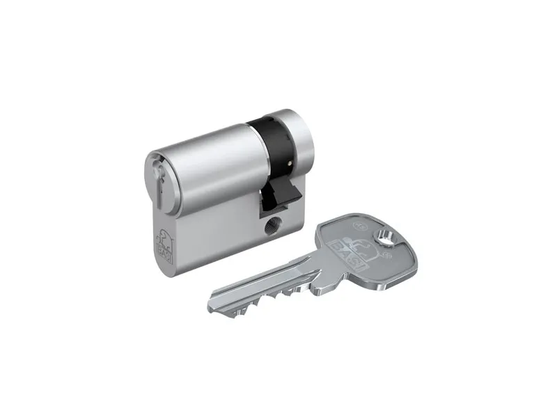 fornikletDen robuste og sikre AS profil-halvcylinder serie fra BASI, kan anvendes til garageporte, kombinationslåse, nøglekontakt eller hængelåse. Låsecylinderen består i Kern af 8 direkte låseelementer på 2 forskellige niveauer og sørger dermed for mere sikkerhed. Halvcylinderen af høj kvalitet leveres med 3 nøgler. Med det forskellige lukkende system passer kun de 3 medfølgende cylindernøgler. Desuden er der altid mulighed for at lave erstatningsnøgler ved den regionale nøgletjeneste. Den massive cylinder af messing kommer med en udboringsbeskyttelse, som forhindrer/vanskeliggør boring af mulige indbrudstyve. Ved fremstillingen af BASI-cylinderen er der lagt vægt på kvaliteten. Fremstilling og kontrol sker i henhold til din standard 18252:2006-12.