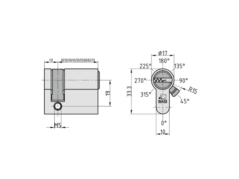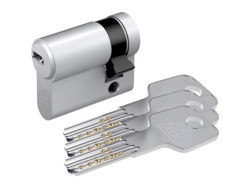 fornikletDen sikre profilhalvcylinder med borelenøgle fra mærket BASI kan anvendes til garageporte, skiftelåse, nøglekontakt eller hængelåse. Borecylinder til fordybning består i Kern af 8 direkte spærreleelementer på 2 forskellige niveauer og sørger dermed for mere sikkerhed. På grund af den ekstra picing-, udbore- og slagbeskyttelse giver dobbeltcylinderen den bedste beskyttelse og gør det derved svært for indbrudstyve at bryde låsen med vold eller at knække den. Profilcylinderen er udstyret med et forskelligt lukkende system. Det betyder, at kun de 3 medleverede skruenøgler passer. Halvcylinderen har en 8-dobbelt justerbar låsetunge. Ved hjælp af koden på nøglen kan der til enhver tid tages erstatningsnøgler hos din regionale nøgletjeneste. Ved produktionen af den robuste cylinder er der særligt fokus på højeste kvalitet. Præcis fremstilling og kontrol sker i henhold til din standard 18252:2006-12 / din 18252-10 / din en 1303:2005-04 Reg. nr. 34v05