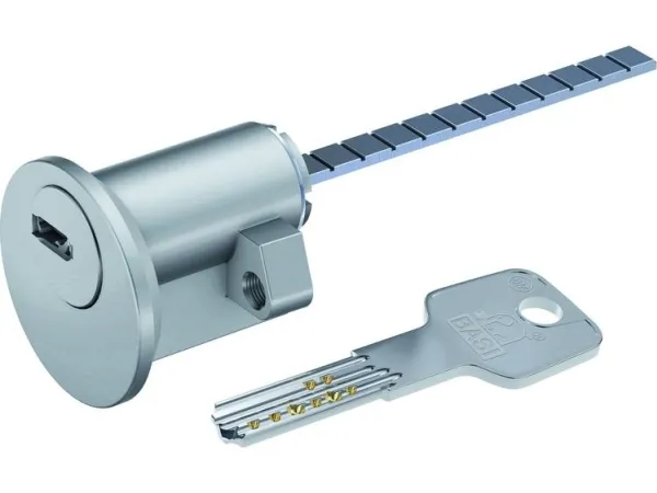 fornikletDen udvendige cylinder også kaldet rundcylinder egner sig til dørekstralåse på dørbladet. Den udvendige profilcylinder kan anvendes i stedet for en drejehjul på den ekstra dørlås. ideal til BASI-dørlås KS 500, samt KS 500R (sælges separat). Ydercylinderen består af materialer i høj kvalitet, som lover en lang levetid og en høj slidstyrke. Naturligvis er cylinderen udstyret med alle sikkerhedskendetegn, som også har en standard-profilcylinder. Cylinderen er fremstillet af massiv messing og leveres med 3 borfordybningsnøgler. Derudover har anvendelsen af borefordybningen en pickupbeskyttelse og udboringsbeskyttelse, der giver yderligere sikkerhed til dine døre. Pickingbeskyttelsen er en afskærmning, der forhindrer låsning af låsecylinderen ved hjælp af værktøj. Ved den såkaldte Lock-picing skubbes værktøjer som for eksempel difiche ind i nøglekanalen for at nedstøde de enkelte stifter, så cylindrens rotor kan drejes. Borebeskyttelsen er en