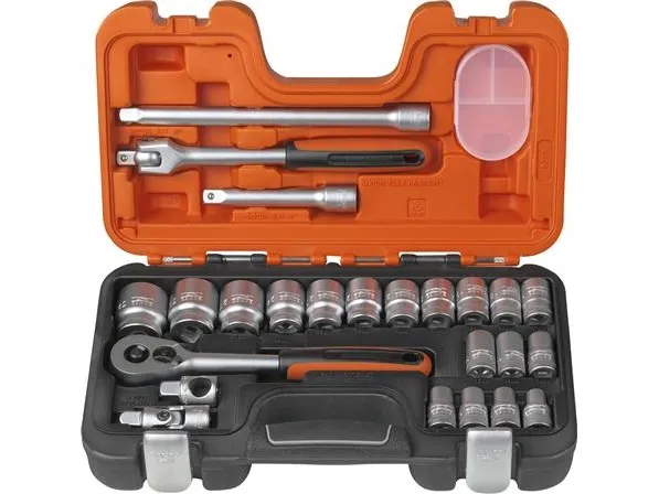 Bahco Hylsnyckelsats 1/2", Hylssats, 1/2", Metrisk, 18 huvuden, 10,11,12,13,14,15,16,17,18,19,20,21,22,23,24,27,30,32 mm, Stål