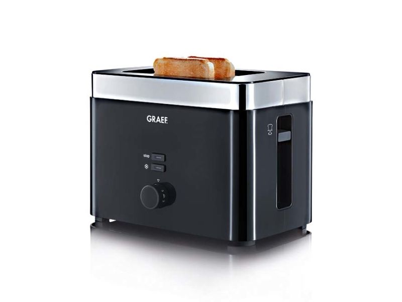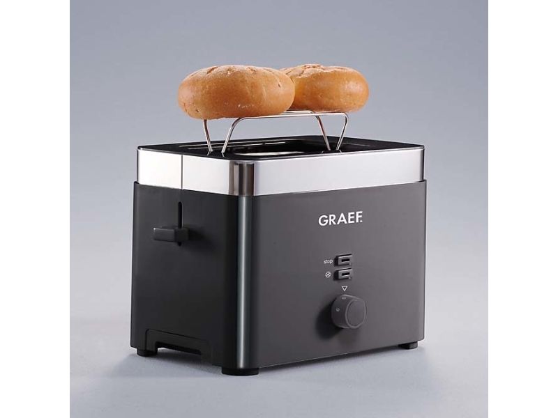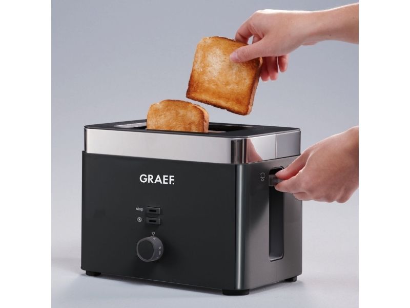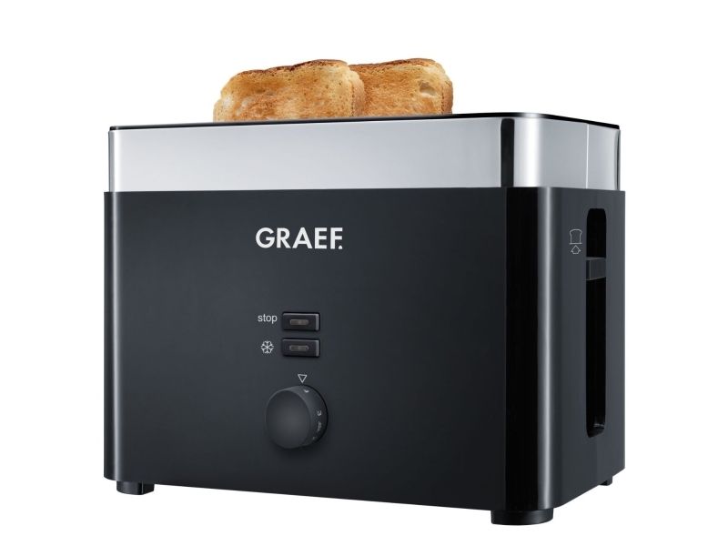 Breakfast with pleasure - welcome the day with fresh toast! The compact Graef 2-slices Toaster TO 62 is browning your toasts in the twinkling of an eye. By the way, TO 62 with its sophisticated design and the combination of plastic and stainless steel surfaces, is the perfect addition to your Graef kettle or milk frother in your kitchen.