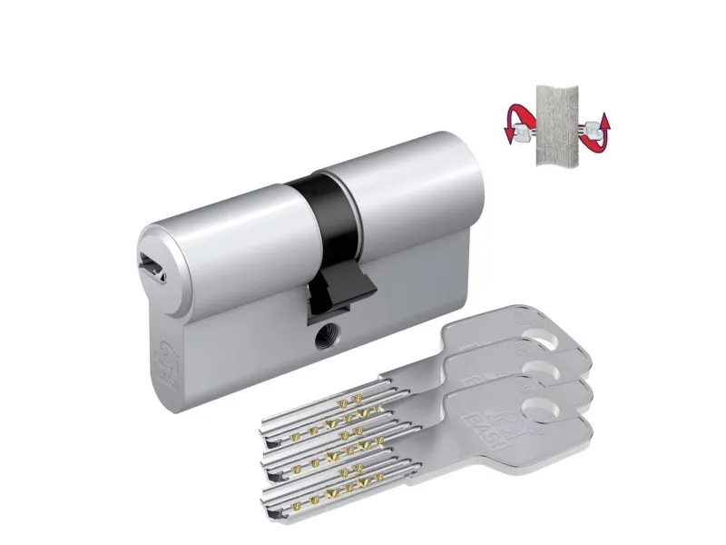 fornikletDet kvalitetsfulde profil-dobbeltcylinder af mærket BASI med vendenøgle gør dørlåsen til dit hus- eller indgangsdør. Borecylinder til fordybning består i Kern af 8 direkte spærreleelementer på 2 forskellige niveauer og sørger dermed for mere sikkerhed. På grund af den ekstra picing-, udbore- og slagbeskyttelse giver dobbeltcylinderen den bedste beskyttelse og gør det derved svært for indbrudstyve at bryde låsen med vold eller at knække den. Profilcylinderen er udstyret med et forskelligt lukkende system. Det betyder, at kun de 3 medleverede skruenøgler passer. Med nød- og farefunktionen kan dørene åbnes udefra, også når der sidder en nøgle på indersiden af profilcylinderen. Ved hjælp af koden på nøglen kan der til enhver tid tages erstatningsnøgler hos din regionale nøgletjeneste. Ved produktionen af den robuste cylinder er der særligt fokus på højeste kvalitet. Præcis fremstilling og kontrol sker i henhold til din standard 18252: