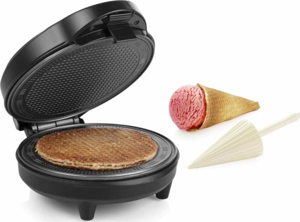 With the special Tristar WF-1170 Ice cone maker, you can make the most delicious ice cream cones in no time. The ice cone maker has a power of 700 W and the baking surface is Ø 20 cm. The power indication light shows if the ice cone maker is turned on, so you can’t accidentally burn your fingers. The cord has a length of 0.7 meters, so you can make your ice cones anywhere in your kitchen. Included is an ice cone accessory that enables you to make a perfect shaped ice cone.