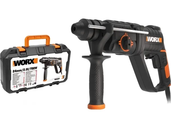 WORX WX337. Chuck type: SDS Plus, Product colour: Black, Orange. Drilling diameter in concrete (max): 2 cm, Idle speed (max): 1050 RPM, Impact energy (max): 2 J. Power source: AC, Input power: 750 W. Weight: 2.8 kg
