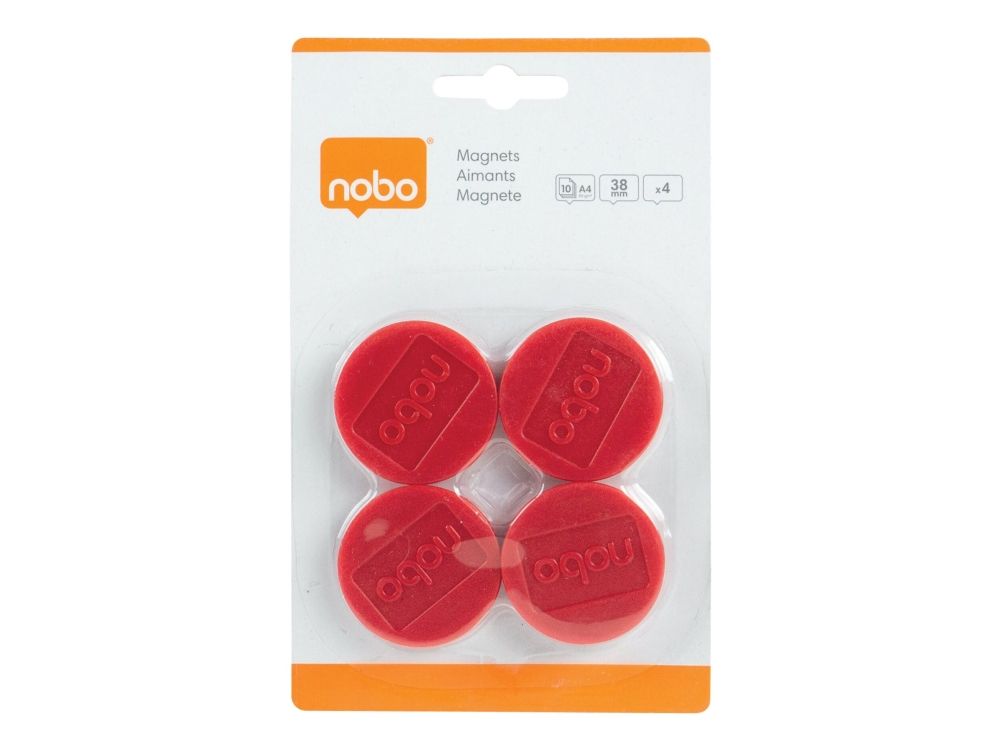 Nobo - Magnet - 3,8 cm diameter - röd (paket om 4) - för P/N: 1900930, 1901043, 1902454, 1902455, Q18090MB, QB05442CD, QBPE1290, QBPE1812, QBPE9060