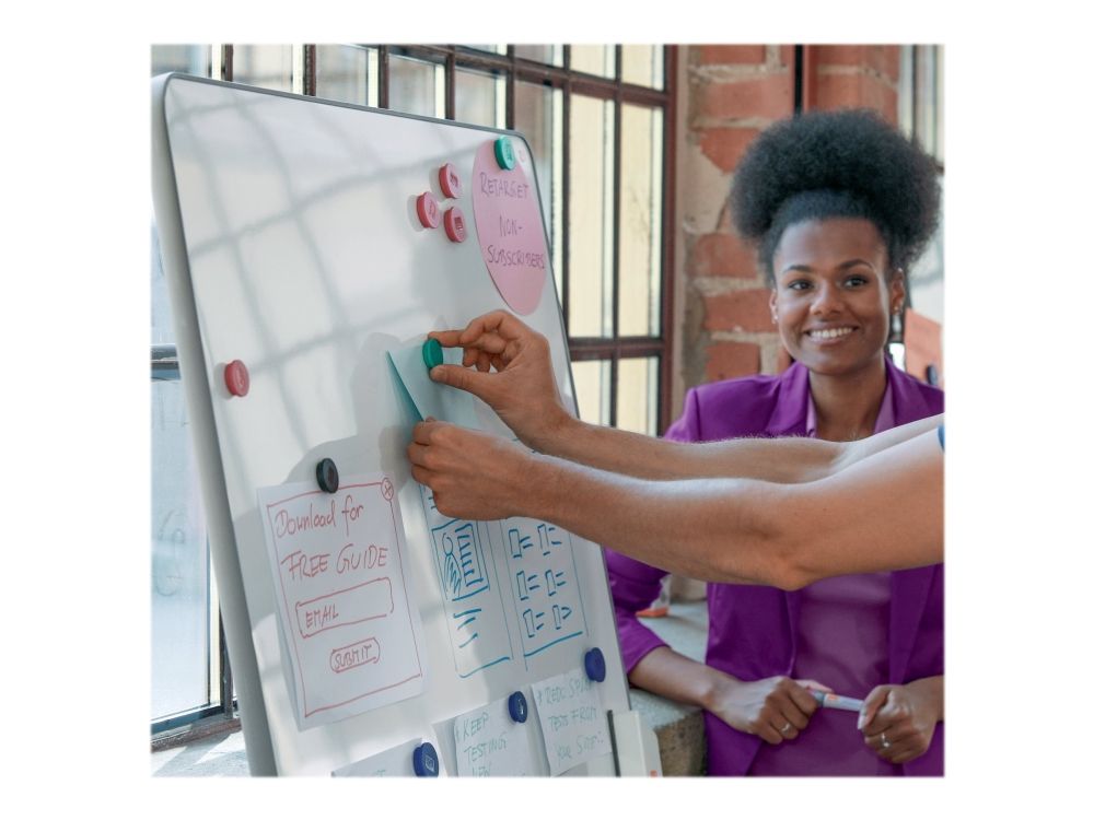 Display office memos and messages neatly and securely with Nobo flat-topped Magnets. This strong magnet can attach up to ten sheets of paper to magnetic whiteboards, filing cabinets and notice boards and they make perfect planning chart markers too.
