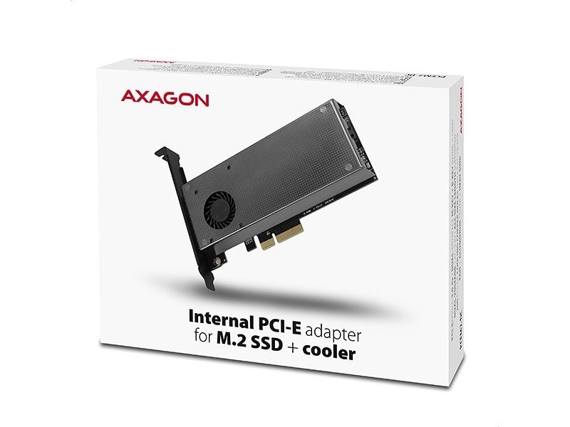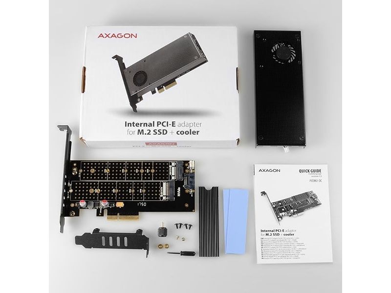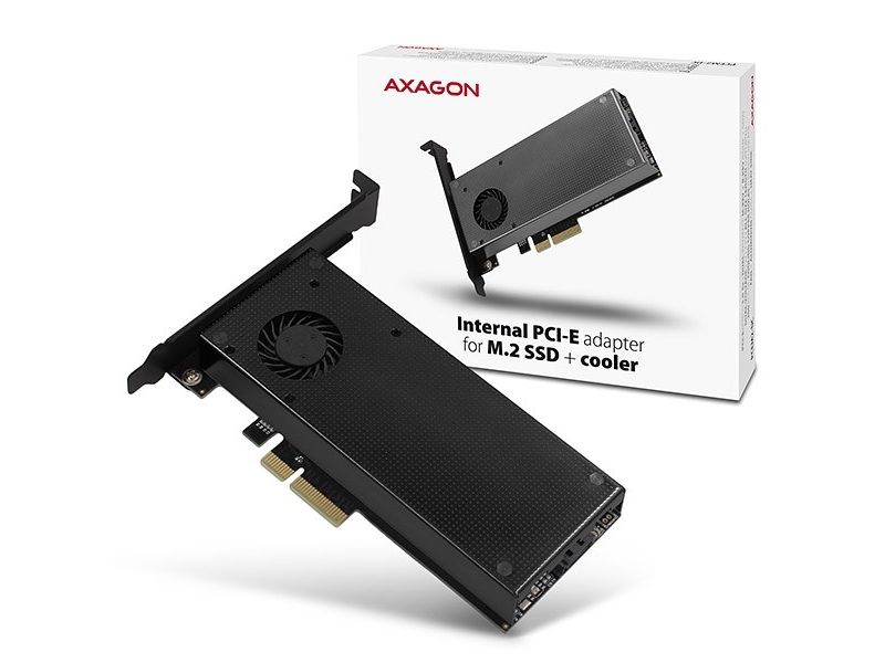 AXAGON PCEM2-DC PCIe-3.0-x4-adapter, 1x M.2-NVMe, 1x M.2-SATA, upp till 22110 - aktiv kylning