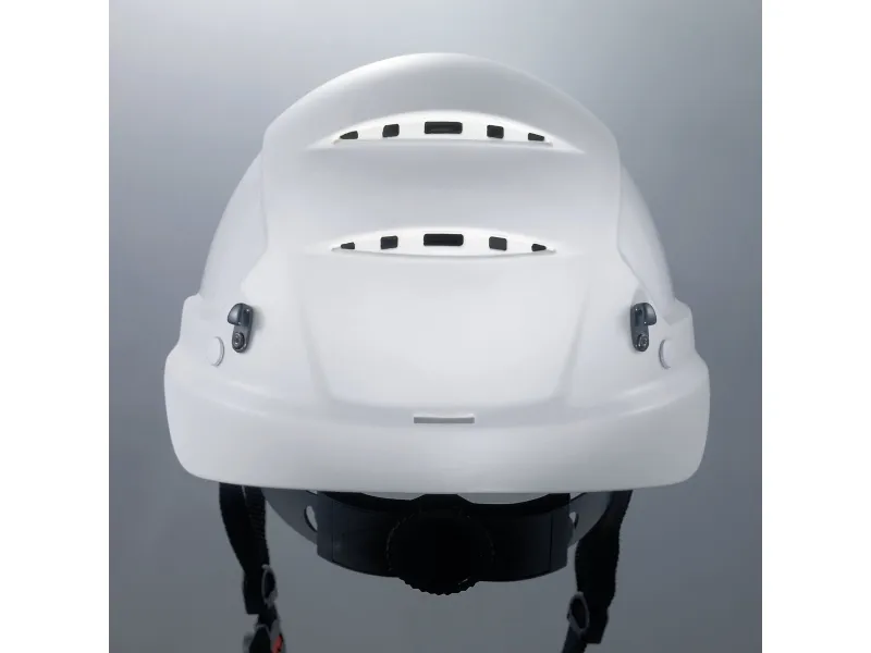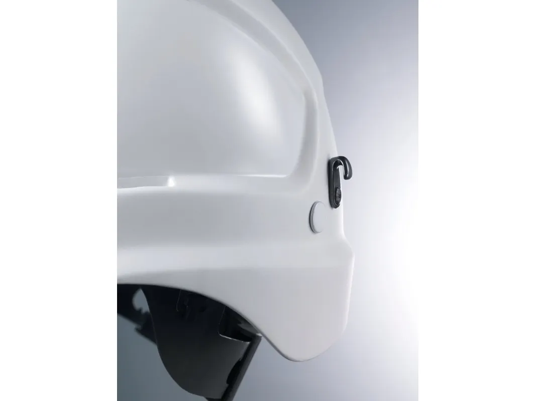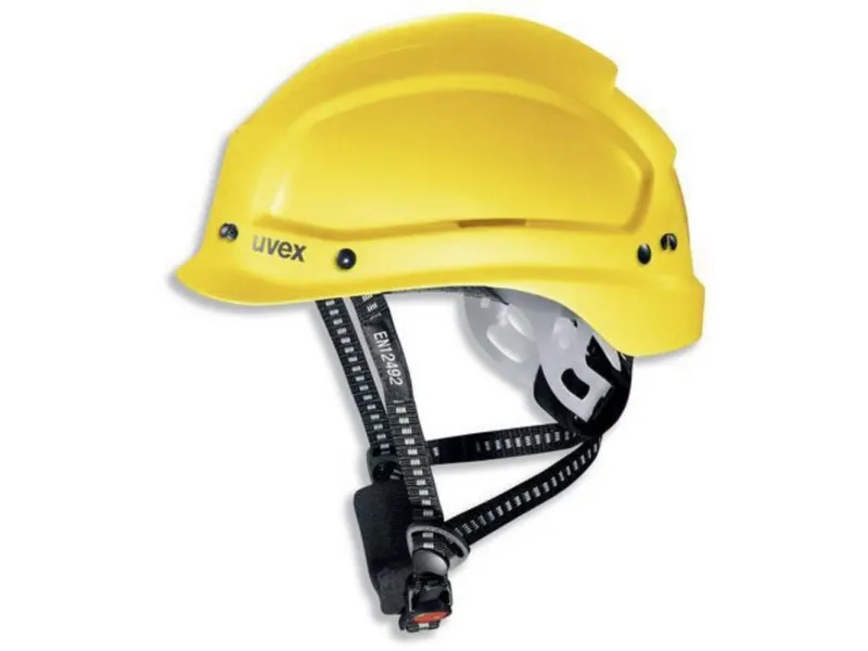 multifunctional helmet for working at heights and rescue operations combination of features from the industrial protection helmet (EN 397) with the requirements for a climbing helmet (EN 12492) safety helmet with slot on the front for helmet lights side Euroslot adapters (30 mm) for attaching earmuffs or the uvex pheos visor system options for attaching head torches, goggles and face protection available in: white, yellow, orange, red, green, blue, black meets standard EN 397 and additional requirement for very low temperatures (-30 °C) firmly riveted four-point chin strap for use in accordance with EN 12492 chin strap included (art. no. 9790.005) for use in accordance with EN 397 light ABS helmet shell offers high level of protection and durability six-point textile band attachment ensures optimal fit and great comfort suspension harness with wheel ratchet for variable width adjustment delivered as standard with a black PU sweatband (art. no. 9760.009); there is also an option of a light sweatband made of synthetic leather (art. no. 9760.005) 9773050: white 9773150: yellow 9773250: orange 9773350: red 9773450: green 9773550: blue 9773950: black