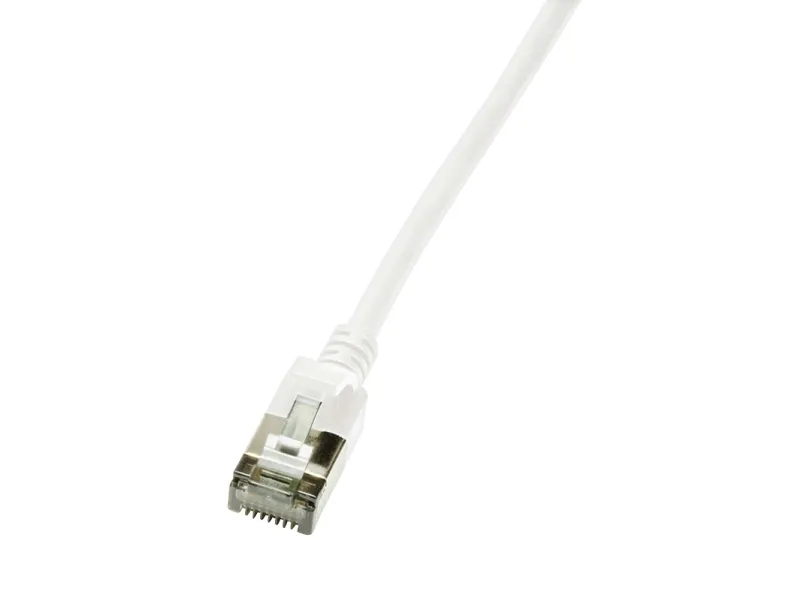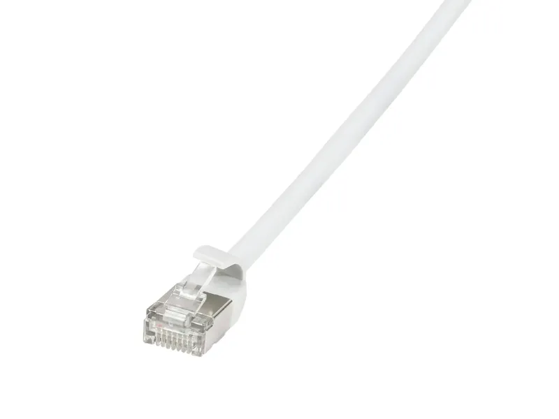 Product information "CAT.6A patch cable, STP TPE, SlimLine, white, 0.3m"\nMakes network cabling flexible and save spacing like never before when using LogiLink’s SlimLine CAT6A patch cables. With much thinner diameter than a standard patch cord, these cables allow the user to be much more flexible into smaller places when networking becomes tight without loosing speed or reliability. Clear up server rooms and reduce congestion in data centers with these sleek and slender Cat6a Slim patch cords.