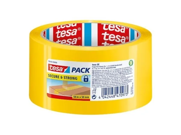 The yellow packaging tape tesapack Secure and Strong is suitable for sealing safety packings. With its sealing effect, it helps the user to ensure a safe transport route. The adhesive safety tape is easy to use and unwinds silently.