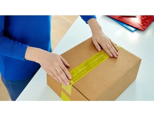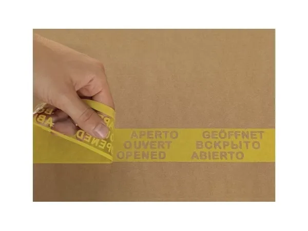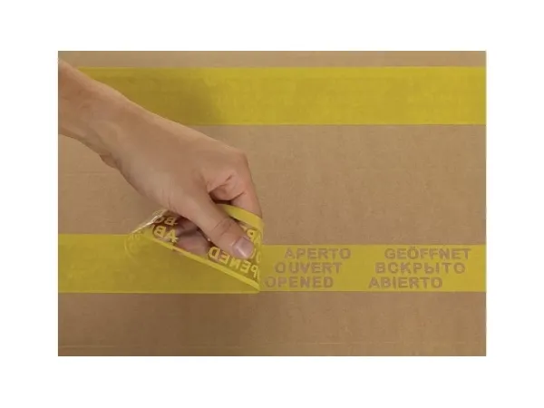 With the yellow packaging tape tesapack Secure and Strong, you can make the transport route of parcels safer. For if somebody removes the packaging tape, the message „open“ remains clearly visible – in different languages. Even reclosing doesn't change this sealing effect. The safety duct tape prevents theft and is especially suitable for shipping high-priced products or sensitive documents. The packaging tape is highly adhesive and can be unwound evenly and silently.