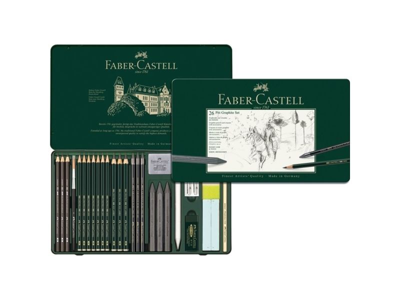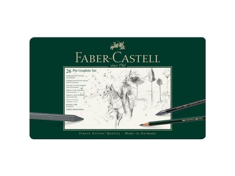 - A carefully selected range of Castell 9000 pencils in lead grades 2H, HB, B, 2B, 4B, 6B and 8B, Castell 9000 Jumbo and Graphite Aquarelle pencils in lead grades 2B, 4B and 8B, Pitt Graphite Pure pencils in hardness grades 3B, 6B, 9B, Pitt Graphite crayons in hardness grades 2B, 6B, 9B and accessories