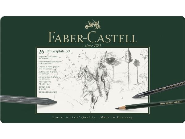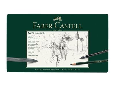 Faber-Castell's PITT Graphic range provides all creative artists with an extensive range of pencils and crayons in different grades of hardness for sketching, graphic design and shading work. The "green pencil from Faber", which was already being mentioned with approval by Van Gogh and Goethe, has now become part of everyday life. The 16 different grades of hardness range from a delicate grey hue to a deep graphite black, and offer artists a wide range of possibilities. The PITT Graphite Pure leads are ideal for creating contrasts and shading extended areas. These pencils offer unparalleled possibilities for spontaneous expression, creating different effects based on the pressure applied and grade of hardness. The PITT graphite crayons are an ideal and very economical medium for working on very large sketches and areas.