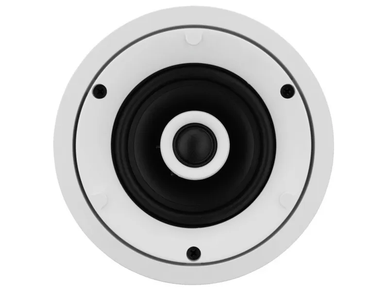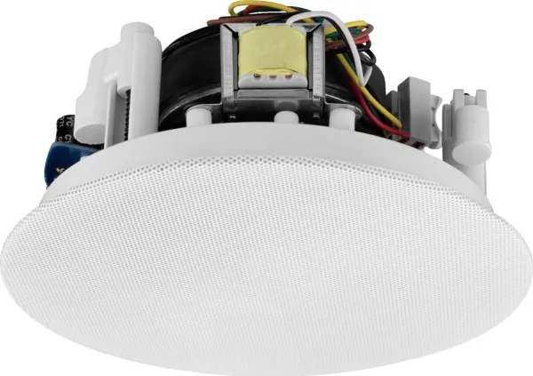 PA hi-fi wall and ceiling speaker, 15 W;#100 V transmission technology or 8 Ω operation;#Power taps: 100 V (8/4/2/1 W);# 2-way version with coaxial dome tweeter;#10 cm (4") bass speaker with waveguide and 20 mm (3/4") silk dome;#Excellent sound characteristics;#Supplied with 2 stylish protective metal grilles for an individual look;#Protective grille to be magnetically attached;#For a wall thickness/ceiling thickness from 8 to 30 mm;;Manufacturer information:;MONACOR INTERNATIONAL GmbH & Co. KG