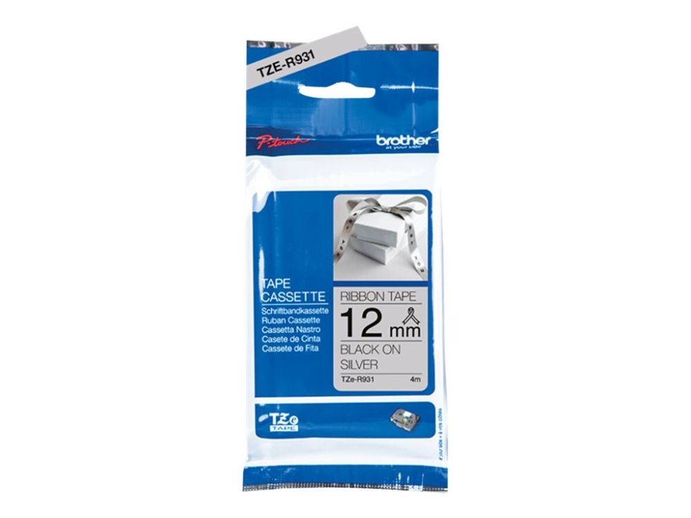Brother TZe-R931 presentband 12mm x 4m - svart på ljusgrått satinband