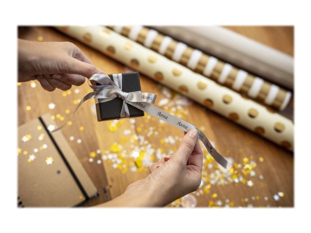 Använd TZe-R931 tillsammans med din P-touch märkmaskin för att skriva ut hälsningar till nära och kära. Låt kreativiteten blomstra och sätt din egen personliga prägel på presenter, kort och pyssel med äkta Brother TZe-R931 satinband.