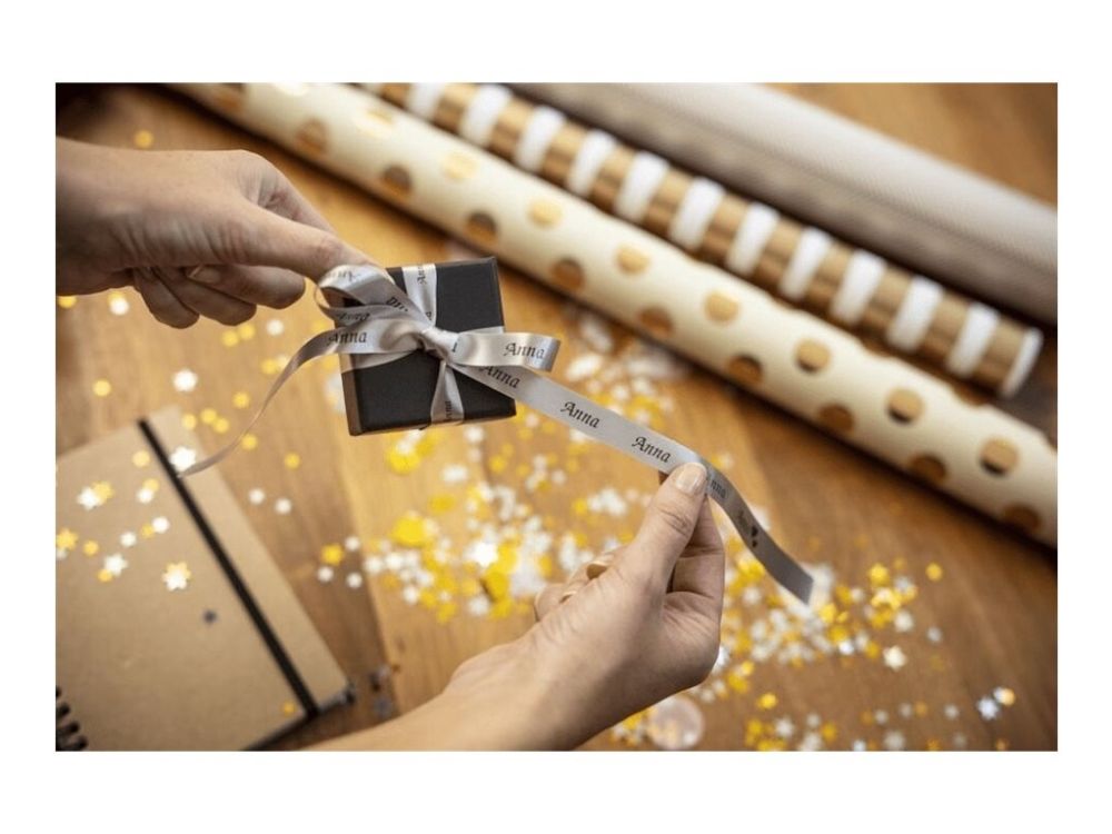 Det lyxiga tygbandet med sin glänsande yta utan lim är perfekt för att slå in presenter och skapa dekorationer.