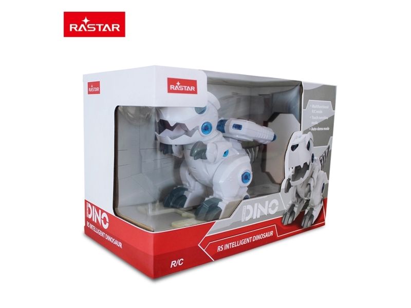 Lär dig känna den skojia, intelligenta Rastar dinosaurien. Den kan gå framåt, bakåt, till höger och vänster och den kan också sjunga och dansa. Dinosaurien är känslig för beröring och rörelse och den kan skaka på huvudet, öppna och stänga munnen och svänga med svansen. Roboten har också LED-lampor och demo-funktion. Från 6 år.