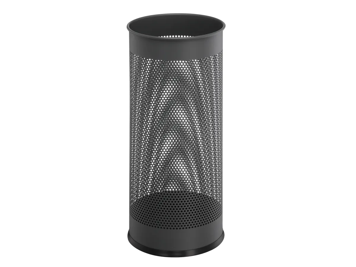 Snygg, dekorativ paraplyhållare i metall med reptålig polyesterbeläggning. Idealisk för t.ex. entréer på jobbet, hemma, hotell eller restauranger. Kan även användas som papperskorg. Kapacitet 28,5 liter Mått: HxØ 620x260mm