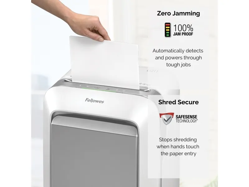 Nästa generations dokumentförstörare från Fellowes erbjuder optimal produktivitet och 100 % Jam Proof-teknik. Alla modeller i serien har en hög säkerhetsnivå med mikroskärning (2x12 mm).