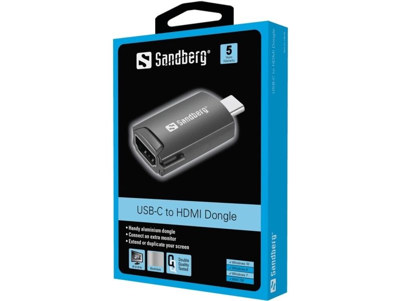 Sandberg - Videokort - USB-C hane till HDMI hona - stöd för 4K