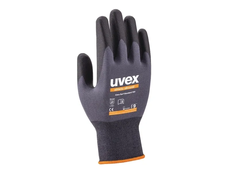 The dirt-resistant universal uvex athletic all-round safety gloves are ideal for mechanical tasks. The robust NBR foam coating produces a glove with high mechanical abrasion resistance, a secure grip in dry and slightly damp environments and high breathability. The comfortable “slim-fit” design provides very good tactile feel when assembling smaller workpieces.