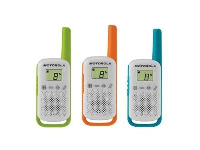 Motorola Talkabout T42 - Bärbar - tvåvägsradio - PMR - 446 MHz - 16-kanals - grön och vit, blå och vit, orange och vit (paket om 3)