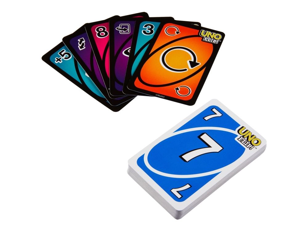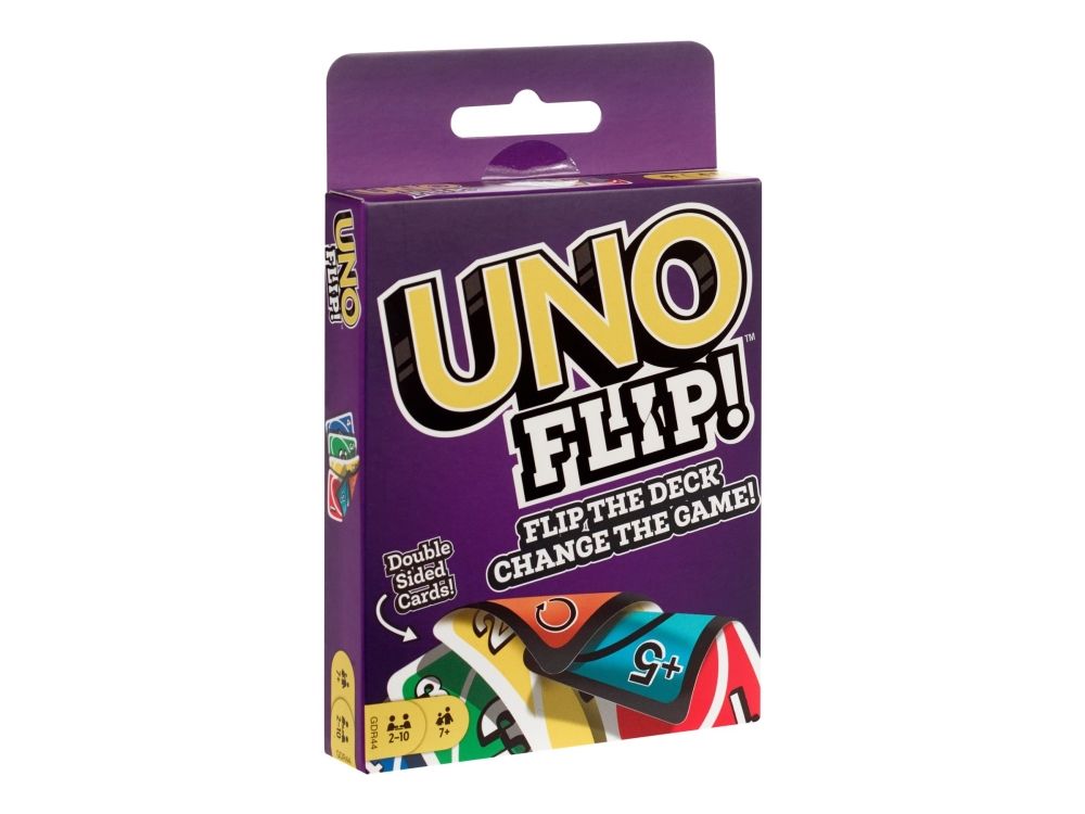 UNO Flip, from the renowned Mattel UNO product line, introduces a fresh twist to the beloved family card game. This version captivates players aged 7 and up, offering a dynamic gameplay experience that can accommodate 2-10 players. Whether for a cozy family game night or a lively party with friends, UNO Flip is designed to provide endless entertainment and laughter. The game fosters social interaction and sharpens strategic thinking, making it a valuable addition to any game collection. With its easy-to-learn rules, UNO Flip ensures that everyone, regardless of age, can join in on the fun right away. Dive into the excitement of UNO Flip and discover a new level of enjoyment in card games.