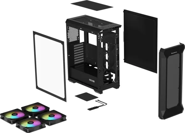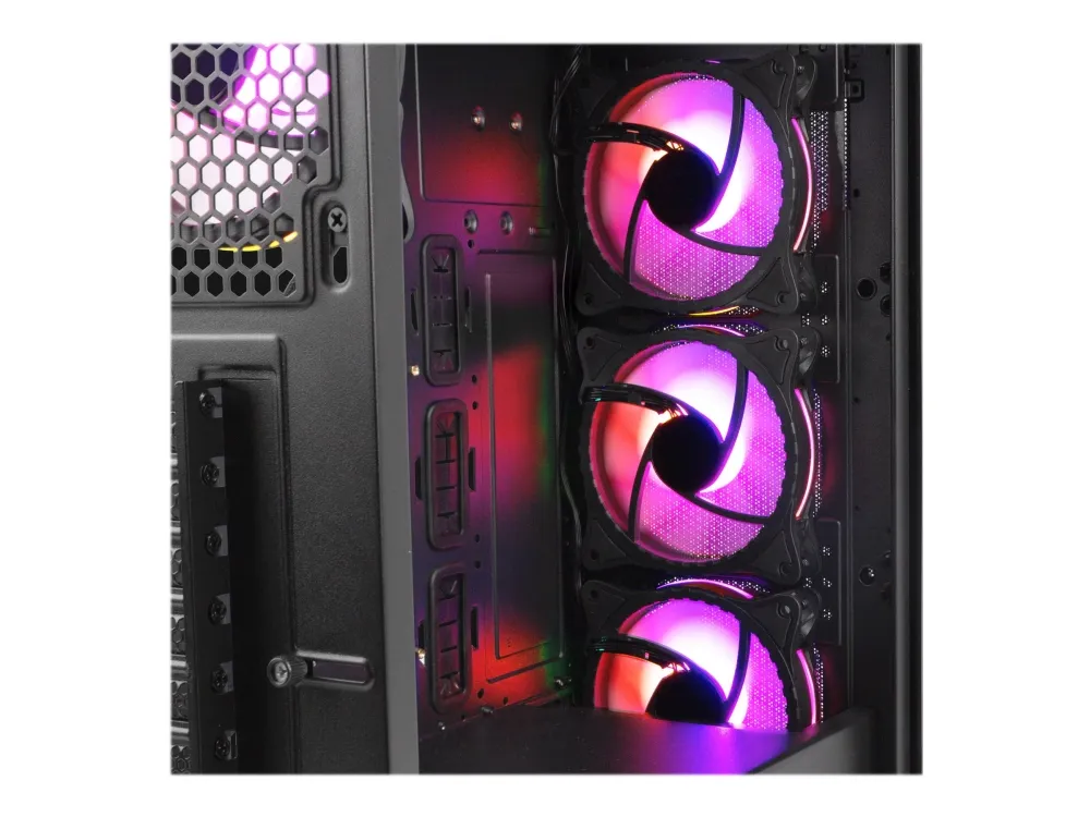 4 ARGB FANS INCLUDED If want to be able to rest assured that your PC is running optimally, its hardware components must have the temperature conditions they need. Your mutual comfort is provided by four high-quality, very quiet 120 mm fans with ARGB lighting. If need be, the case can fit more fans - including 140mm!