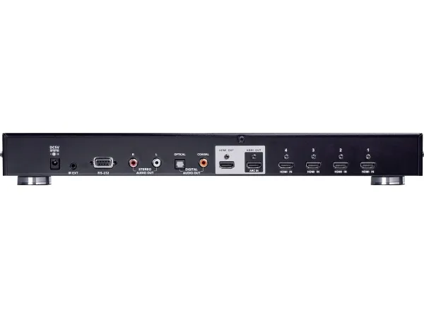 4 x HDMI-ingång Type A 2 x HDMI-utgång Type A 1 x seriell (RS-232) DB-9 1 x fjärrkontroll (IrDA) mini-jack 1 x ljudutmatning RCA x 2 1 x digital audioutgång (koaxial) RCA 1 x TOSLINK-utmatning