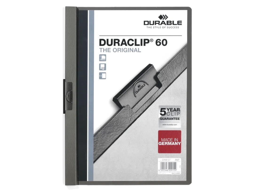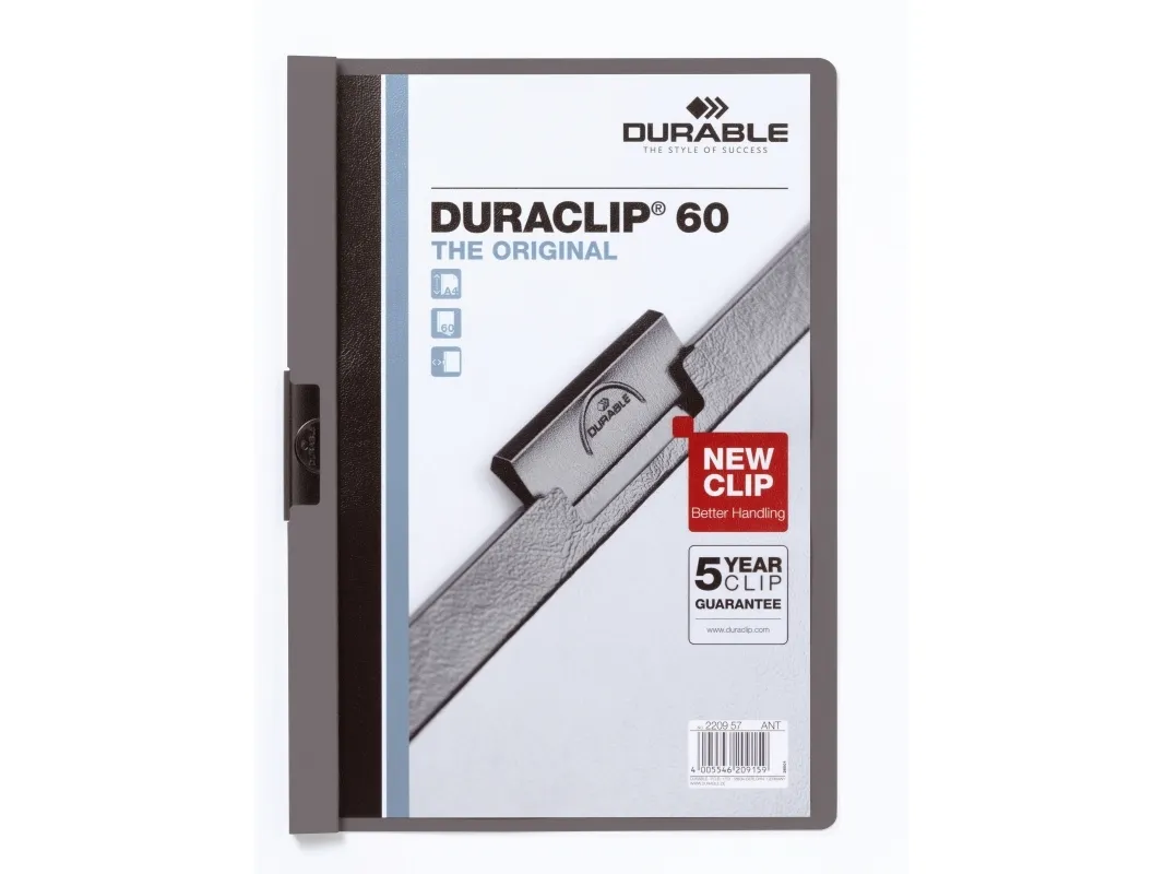 Durable DuraClip Original 60 A4 Anthracite Grey, Grå, PVC, A4, 219 mm, 310 mm