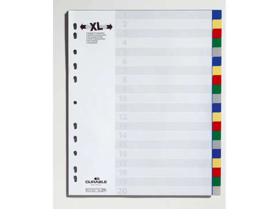 Durable 6759, Tomma registerflikar, Polypropylen (PP), Multifärg, Poträtt, A4, 245 mm