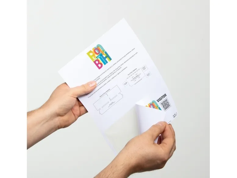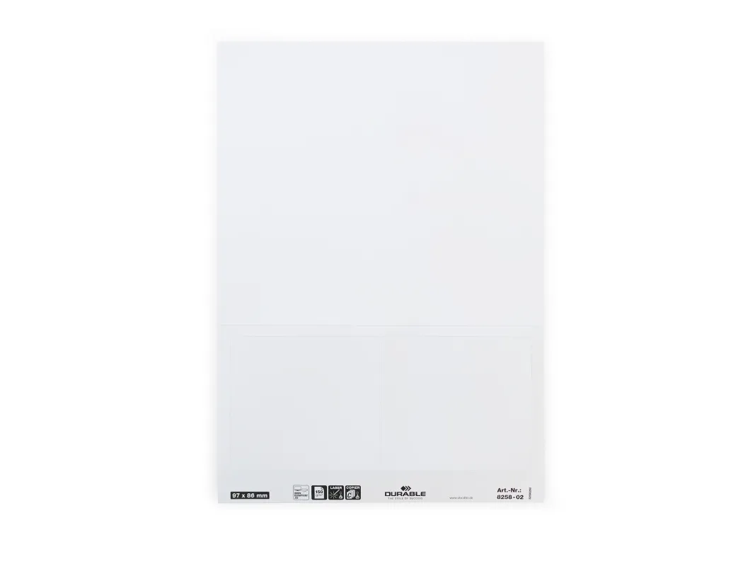 Okomplicerat och snabbt: Vid evenemang med många deltagare är det en fördel med enkel hantering av deltagarnas namnskyltar. Namnskylt på A4-ark: tag loss namnskylten och klistra samman fram och baksidan Med hål för att kombinera med t ex textilhalsband Passar som tillfällig besöksbricka vid utställningar, mässor och liknande event A4-arket kan skrivas ut med en inbjudan eller ett program (endast laserskrivare) och skickas till deltagarna, som samtidigt får sin namnskylt som är integrerad i inbjudan Enkel att designa och proffsig utskrift med DURAPRINT ® Mått på namnskylten: 97 x 86 mm (B x H)