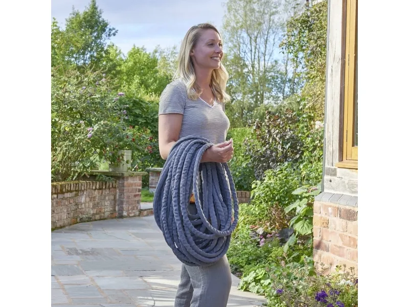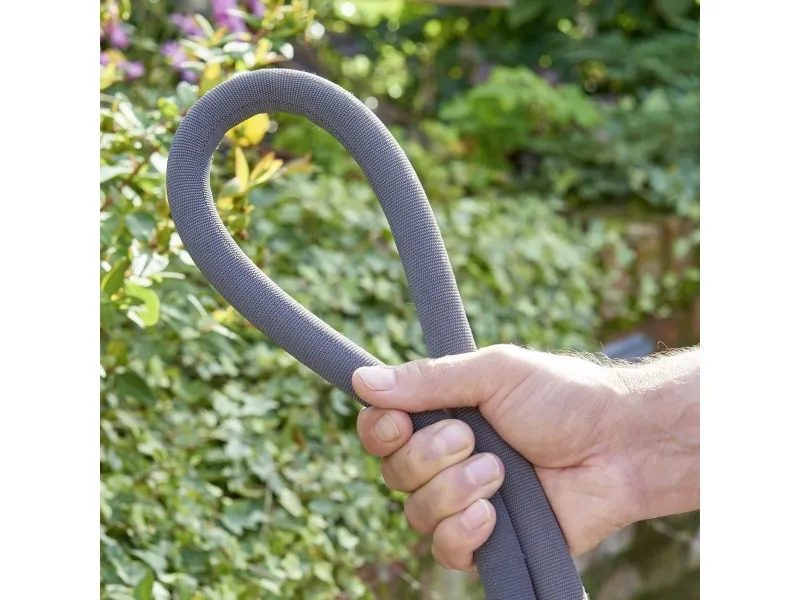 Takket være den store fleksibilitet og den ekstremt modstandsdygtige indkapsling kan Tufhoze uden problemer trækkes langs vægge, hjørner og buske langs med haven uden at knække, dreje eller blive beskadiget. Efter brug kan slangen igen opbevares