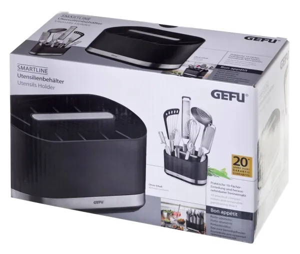 GEFU SMARTLINE, Hållare, Hållare, Bordsskiva, Bestick, Köksutrustning, Svart, Rostfritt stål, Plast, Rostfritt stål