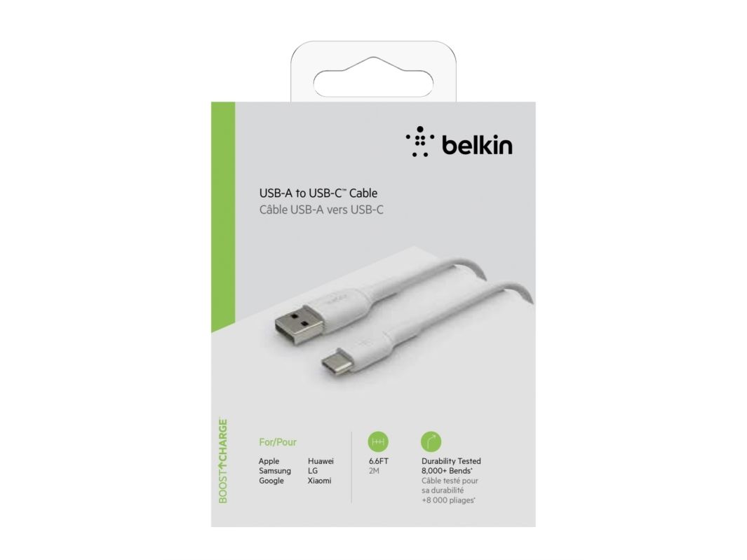 Belkin BoostCharge - USB-kabel - USB-C (hane) till USB (hane) - 2 m - vit
